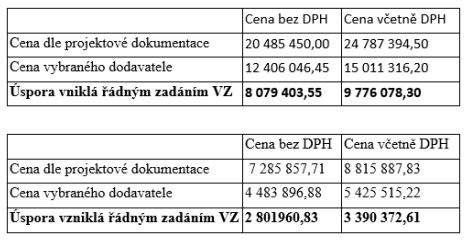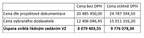 V minulém čtvrtletníku se psalo o výběrových řízeních a podání dotačního titulu. Dnes máme zahájenou lineární stavbu chodníkového tělesa, kdy jedno staveniště bylo předáno dne 11. července a druhému zhotoviteli byla předána stavba dne 10. srpna. Níže můžete vidět tabulku, o které jsem se zmiňoval na 4. zasedání zastupitelstva, vypovídající o efektivnosti zadávání veřejných zakázek včetně úspory.
